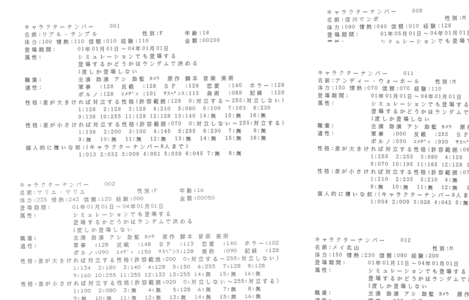 ・最後の資料は、1992年の住民立ち絵ラフとゲーム内部データだよ。