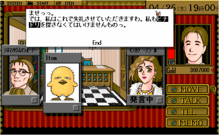 ・岸田秀子 主に広場に出現するので、ひたすら話をして好感度を上げる。 ・マロン・グラッセ 主にカフェに出現する。何度か会話する必要がある。 ・エンペラー・コノワタ 主に酒場に出現する。会話する必要がある。 出没頻度は低め。 ・ハ=ラホーレ=広原 ストリップ小屋で入場料を払い、タミー玉手と会話をした後で酒場にて再度タミーと会話をする事で紹介して貰える。 序盤に固定で雇用できるので、他の原作者に比べて攻略は簡単。 フラグを踏んでも紹介されない場合は、何度かタミーと会話を重ねる必要がある。 ・麻宮まどか 主にレストランに出現する。何度か会話する必要がある。 出没頻度はやや低め。 |