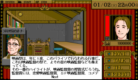 ![]() 2まで進めた段階で、シネマハウスのオーナーに話しかける事で紹介して貰える。 女優とは先に知り合っておいた方が、出演交渉も上手く行くかも? |